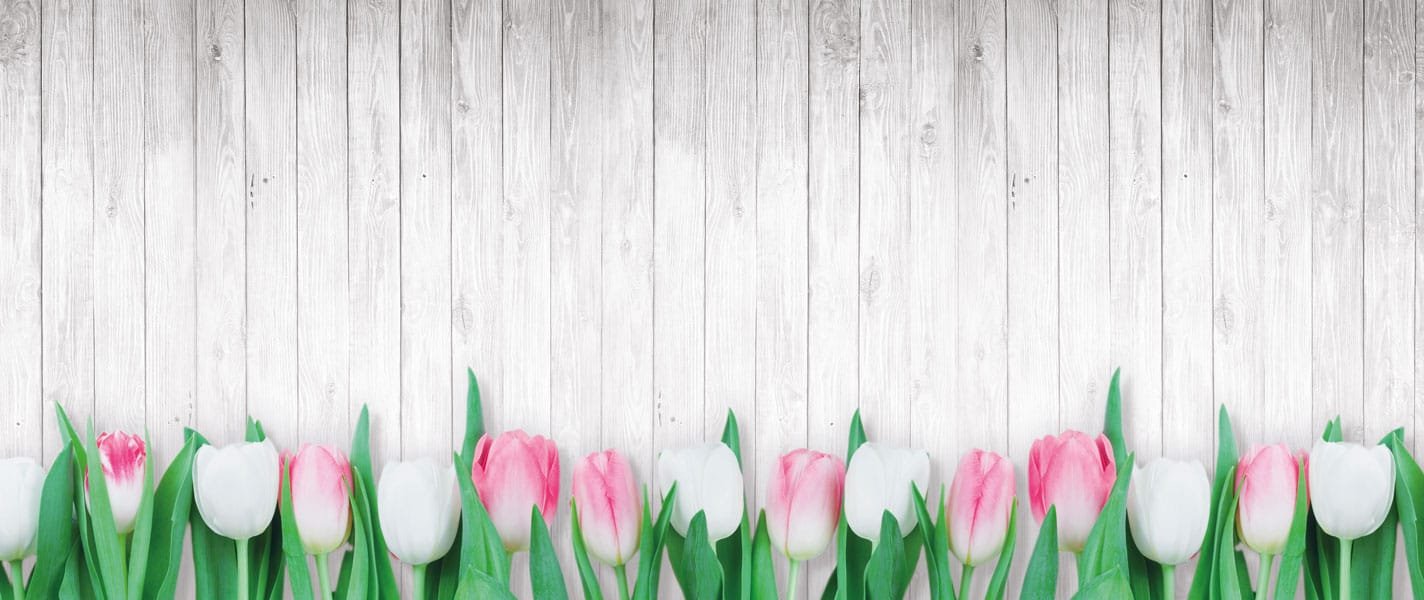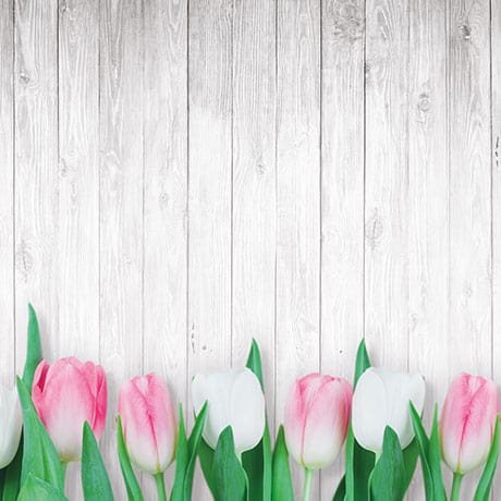 Une crédence florale aux nuances apaisantes. Planches de bois patinées et tulipes, un duo parfait qui ajoutera une touche Campagne Chic à votre intérieur.