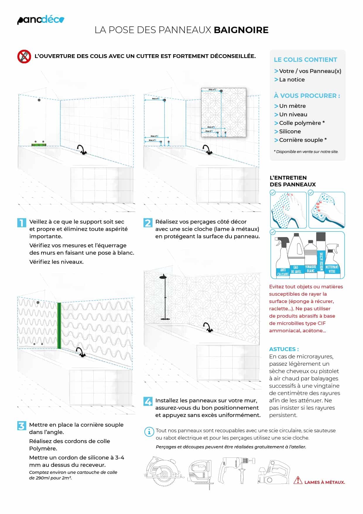Pensée comme un décor mural fixe, elle permet de moderniser l’espace baignoire sans modification lourde.