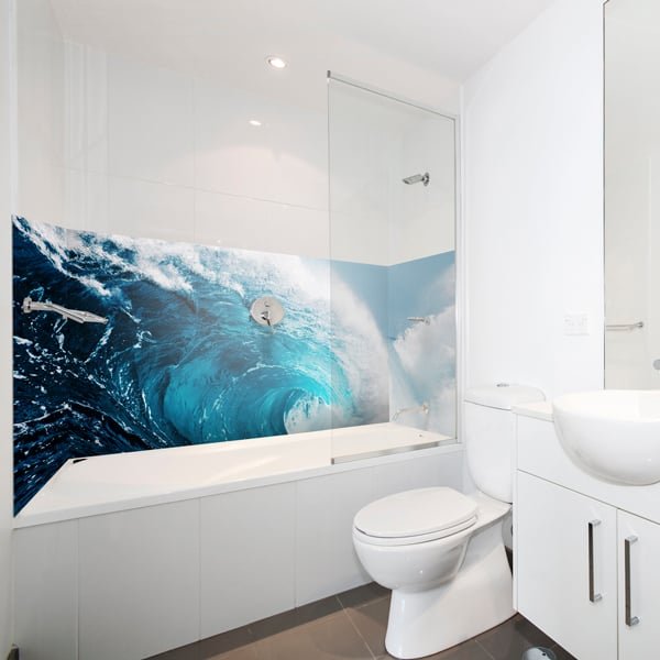 La crédence baignoire Nazaré apporte une dimension spectaculaire autour de la baignoire grâce à une représentation puissante d’une vague en pleine élévation. Le mouvement de l’eau et la profondeur visuelle structurent l’espace et créent un décor immersif qui attire immédiatement le regard.