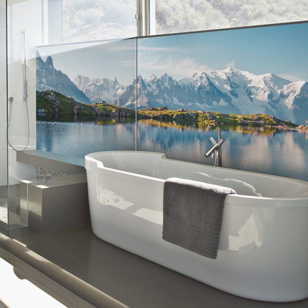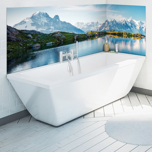Cette crédence de baignoire Mont Blanc s’inspire de la réserve naturelle du Vallon de Bérard pour offrir un dépaysement total dans la salle de bains. Le décor alpin diffuse un vent de fraîcheur et crée une ambiance naturelle, lumineuse et apaisante autour de l’espace bain. Les paysages de montagne apportent une sensation de pureté et de calme, idéale pour un espace dédié au bien-être.