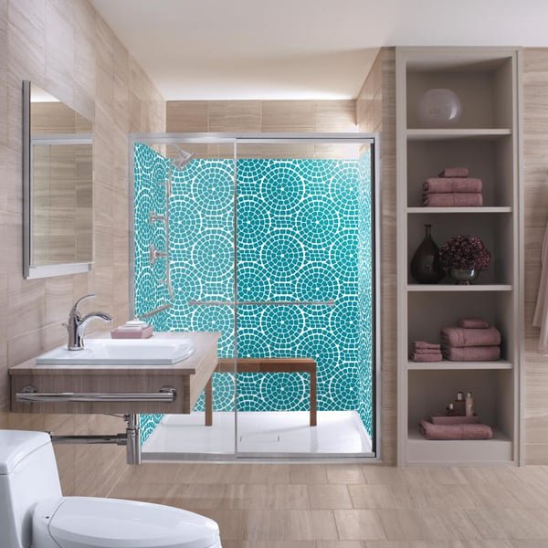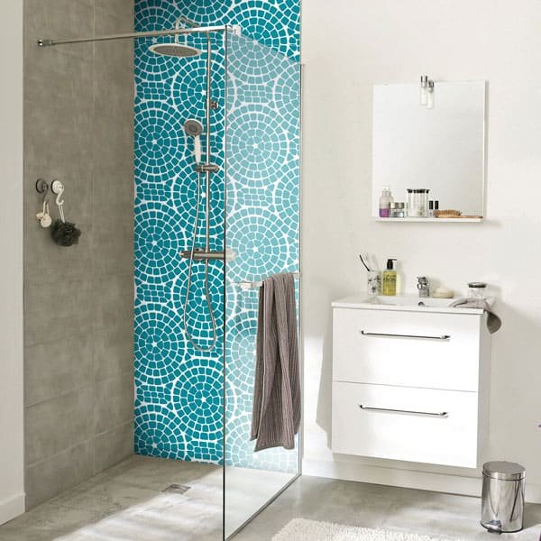 Ce visuel “Odyssée Bleue” apportera une touche de couleur dans votre douche.
