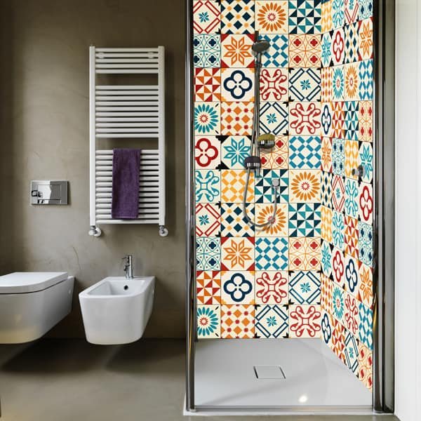 Panneau mural Douche Carreaux Colorés