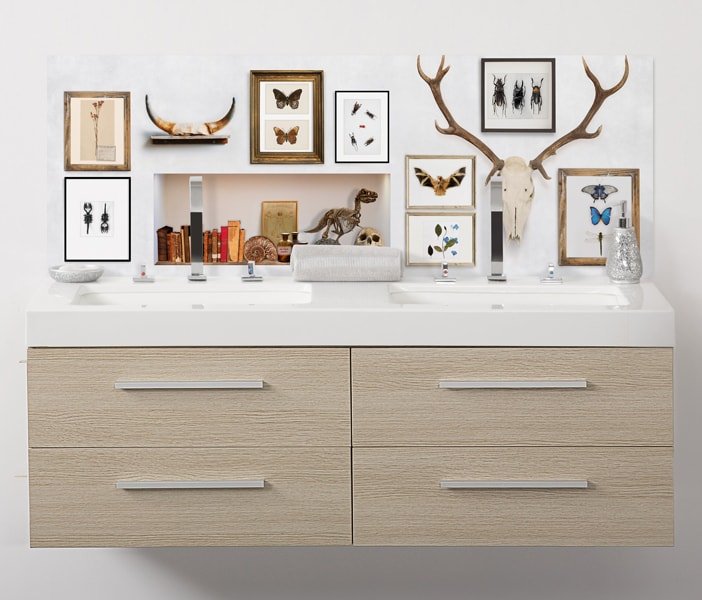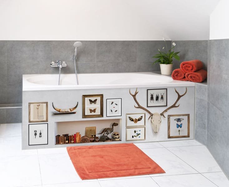 Le panneau mural salle de bains Curiosity habille les murs avec une composition insolite et atypique qui dynamise votre intérieur avec style et originalité. Son univers créatif attire le regard et transforme la salle de bains en un espace moderne, expressif et différent des codes classiques.