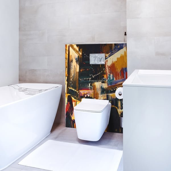 Aussi bien au-dessus d’une vasque ou derrière un wc suspendu, cette crédence “Night City” sera du plus bel effet et donnera le ton à votre déco.
