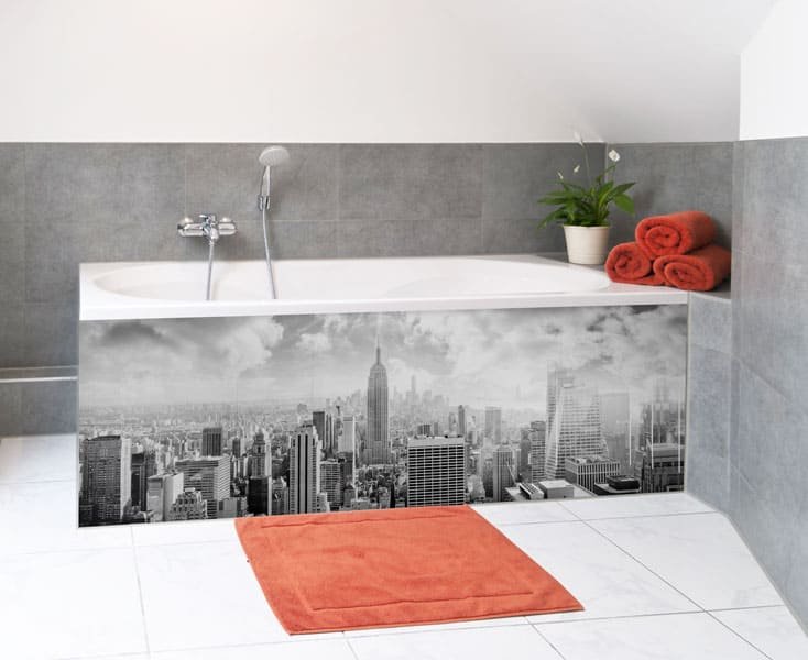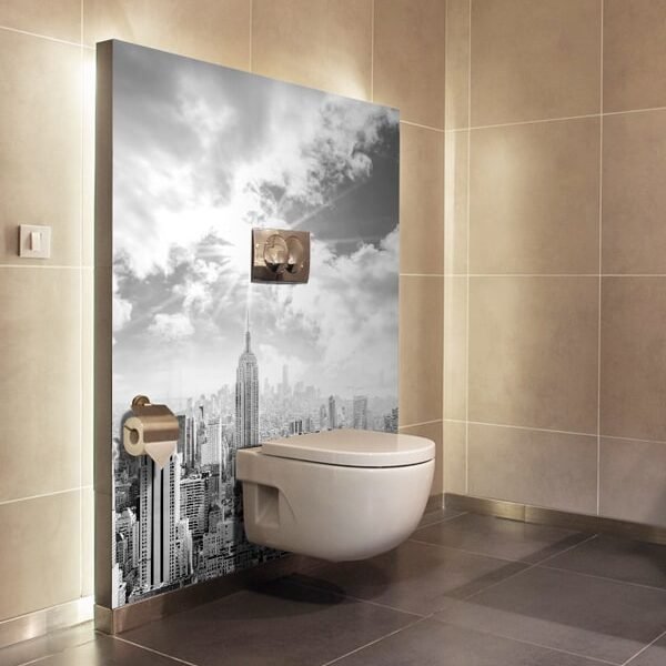 Le panneau mural salle de bains architecture métropolitaine met en valeur les lignes architecturales emblématiques des grandes villes modernes. Les façades verticales, les perspectives graphiques et les contrastes structurés apportent du caractère à la salle de bains et créent une ambiance contemporaine affirmée.
