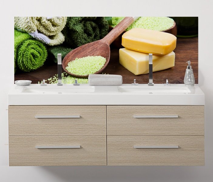 Cette crédence de salle de bains “Senteurs” donnera à votre pièce une ambiance zen et relaxante.