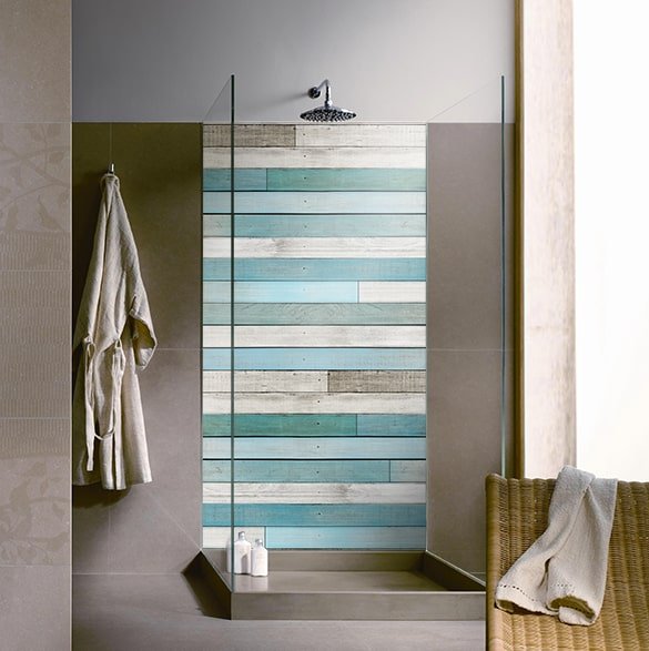 Un aspect original avec cette crédence « Esprit Cabane ». Le charme authentique du bois patiné aux différentes nuances de couleurs. Se décline en crédence de baignoire, lavabo et toilettes.